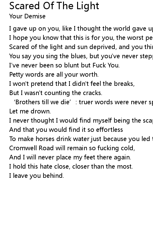 | Scared of the light and sun deprived, and you think the world owes you; | |