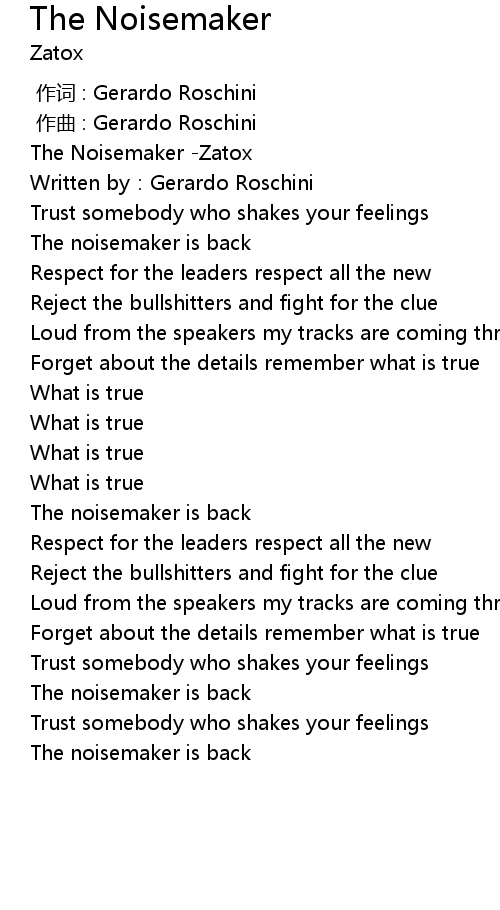 | [00:00.365] | The Noisemaker Zatox |