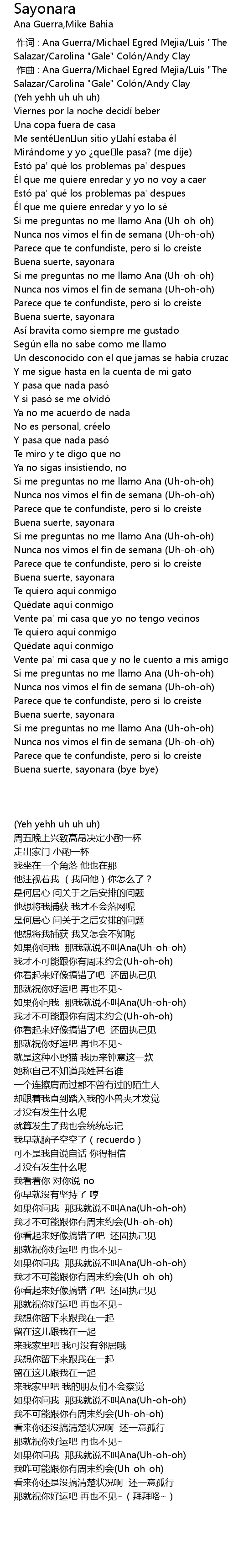 | [00:44.66] | Nunca nos vimos el fin de semana (Uh-oh-oh) |