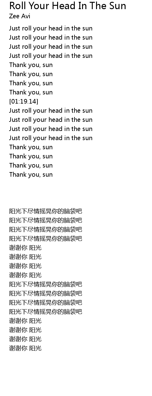 | [00:16.89] | Just roll your head in the sun |