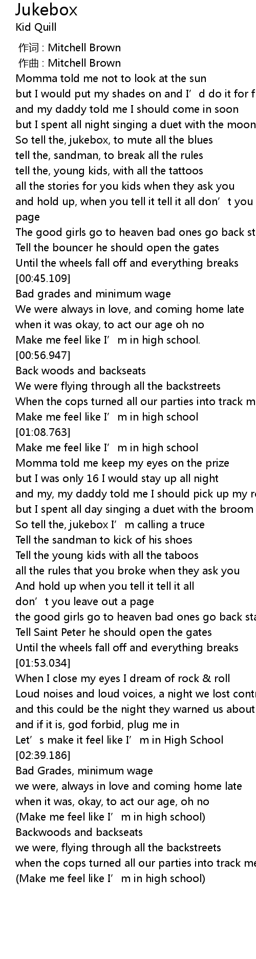 | [02:59.371] | Make me feel like I' m in high school |