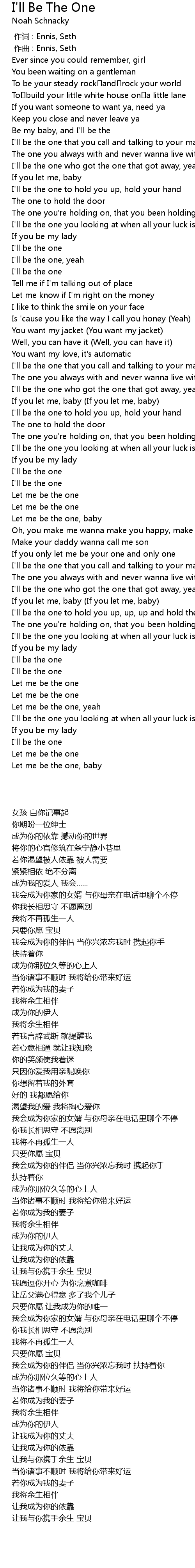 | [01:00.866] | I' ll be the one, yeah |