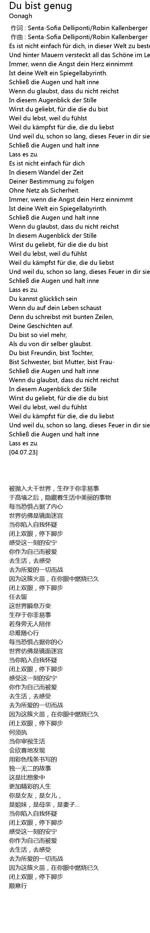 | [03:58.12] | Schlie die Augen und halt inne |