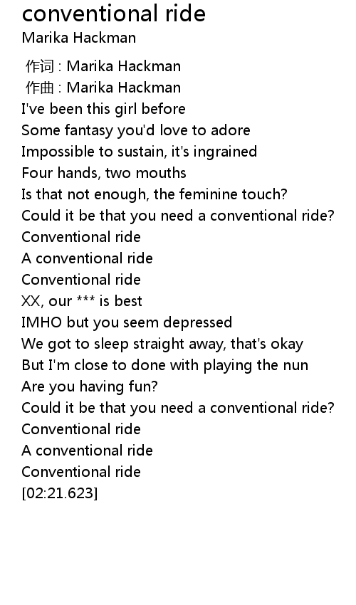 | [02:02.553] | Could it be that you need a conventional ride? |