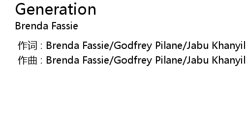 | [00:00.00-1] | zuo qu : Brenda Fassie Godfrey Pilane Jabu Khanyile Fitzroy Ngcuka |