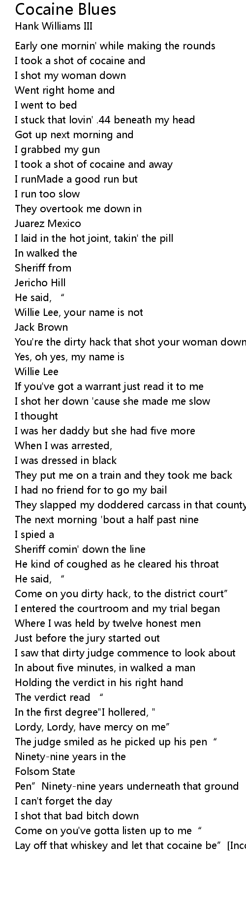 | Lay off that whiskey and let that cocaine be" Incomprehensible |