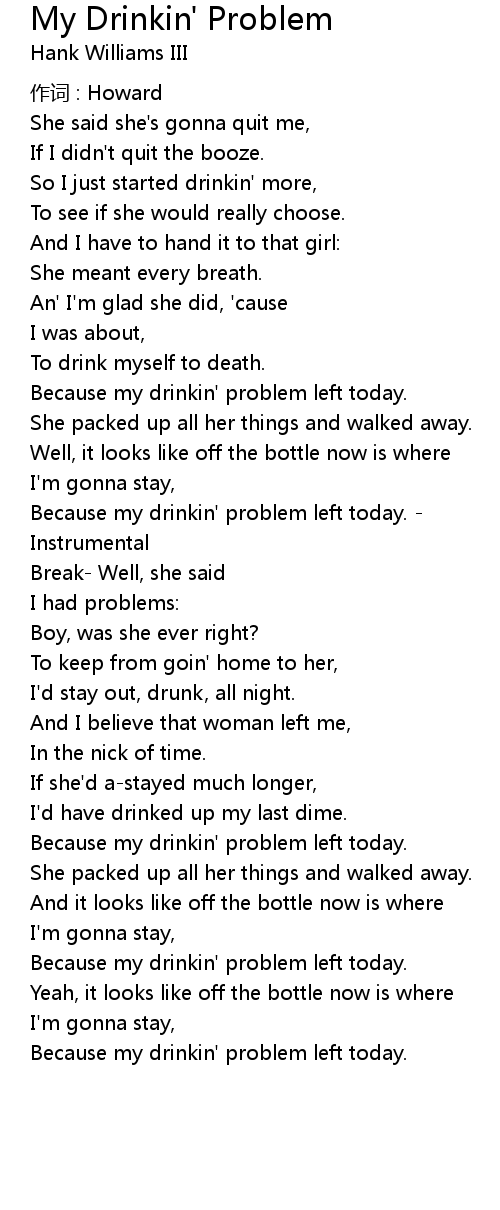| Song | My Drinkin' Problem |
