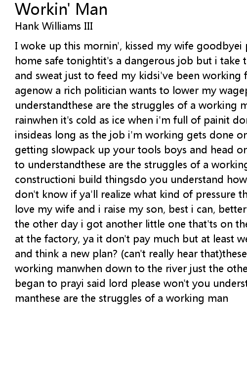 Workin' Man Lyrics