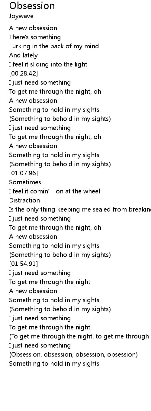 | [02:47.69] | (Obsession, obsession, obsession, obsession) |