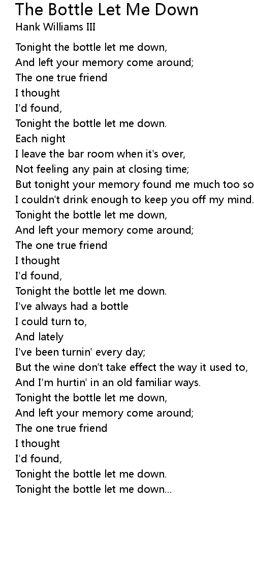 Tonight the bottle let me down. |