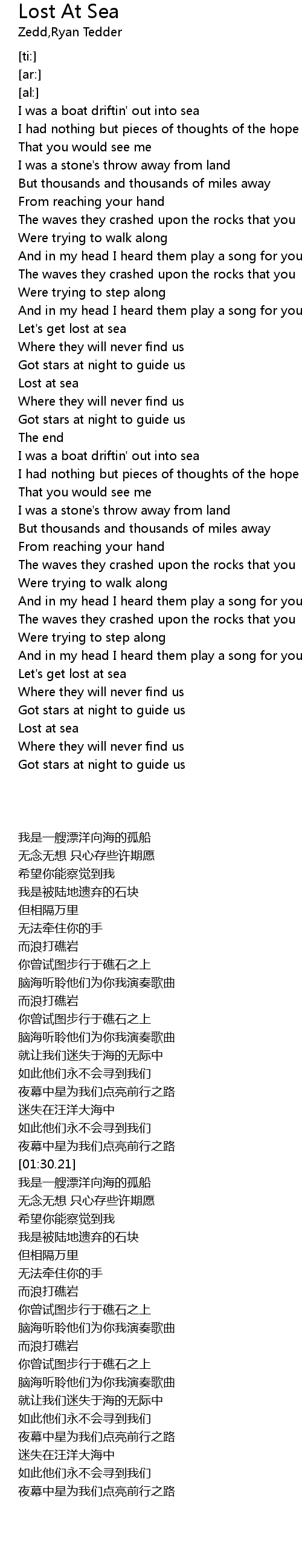 | [01:15.82] | Lost at sea |