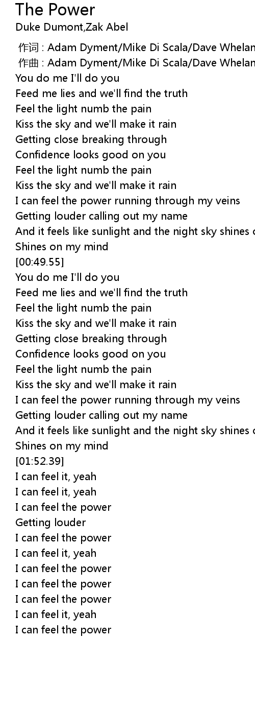 | [00:00.00] | 作词 : Adam Dyment/Mike Di Scala/Dave Whelan/Zak Abel/Lawrie Martin |