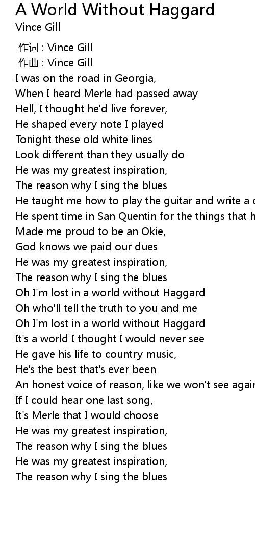 | [00:10.37] | When I heard Merle had passed away |