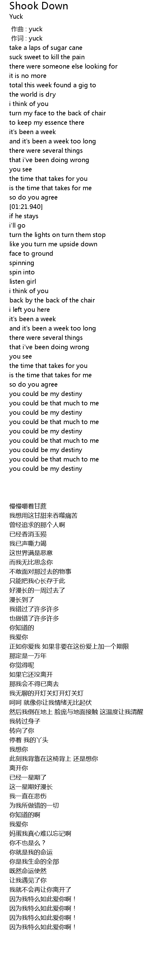 | [00:01.00] | 作词 : yuck |