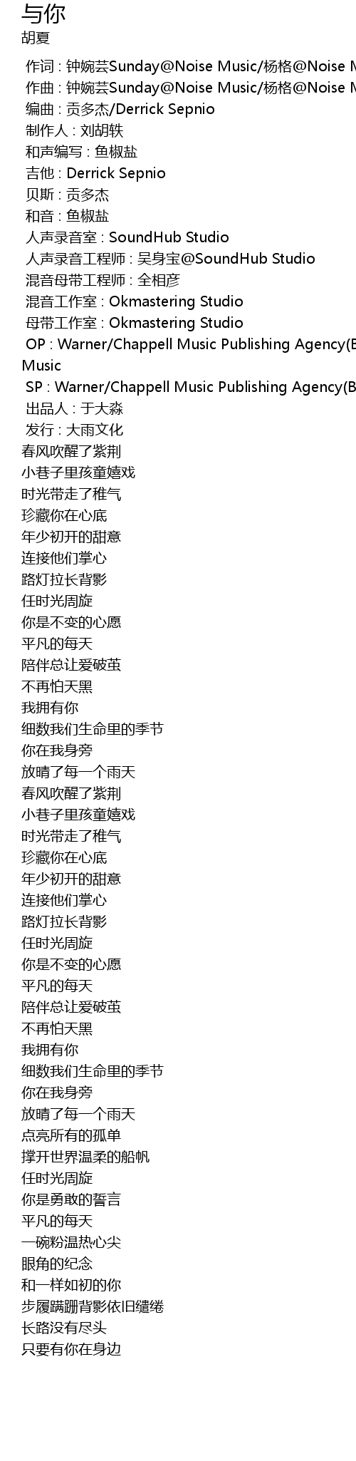 | [00:00.00] | 作词 : 钟婉芸Sunday@Noise Music/杨格@Noise Music/刘胡轶 |