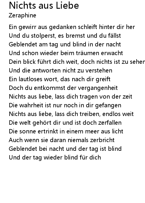 | Nichts aus liebe, lass dich treiben, endlos weit | |