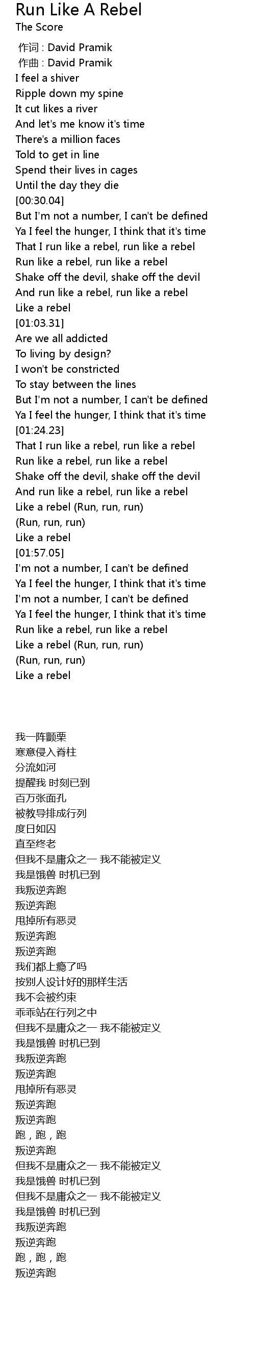 | [01:24.57] | That I run like a rebel, run like a rebel |