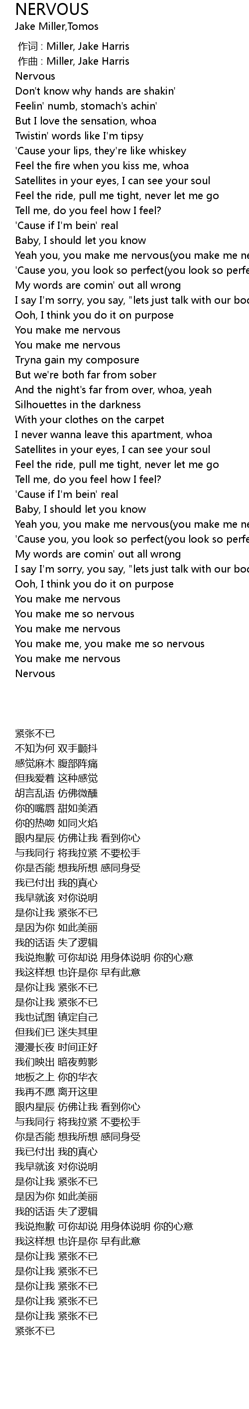 | [01:55.13] | Yeah you, you make me nervous(you make me nervous) |