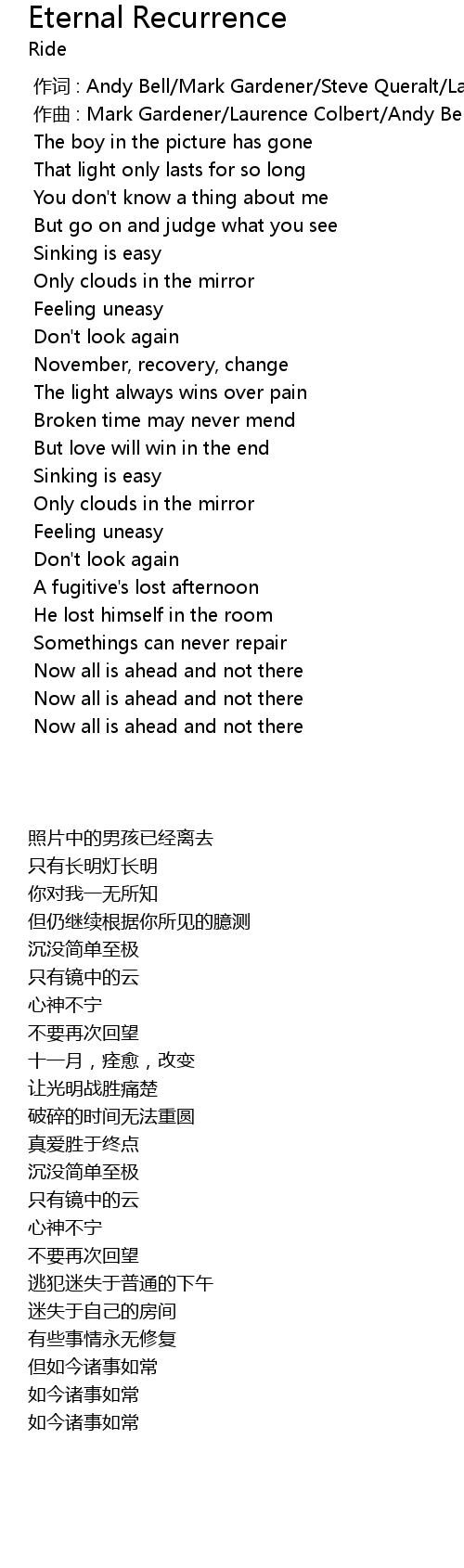 | [00:01.000] | zuo qu : Mark Gardener Laurence Colbert Andy Bell Steve Queralt |
