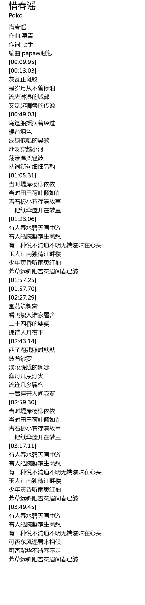 | [00:03.23] | 惜春谣 |