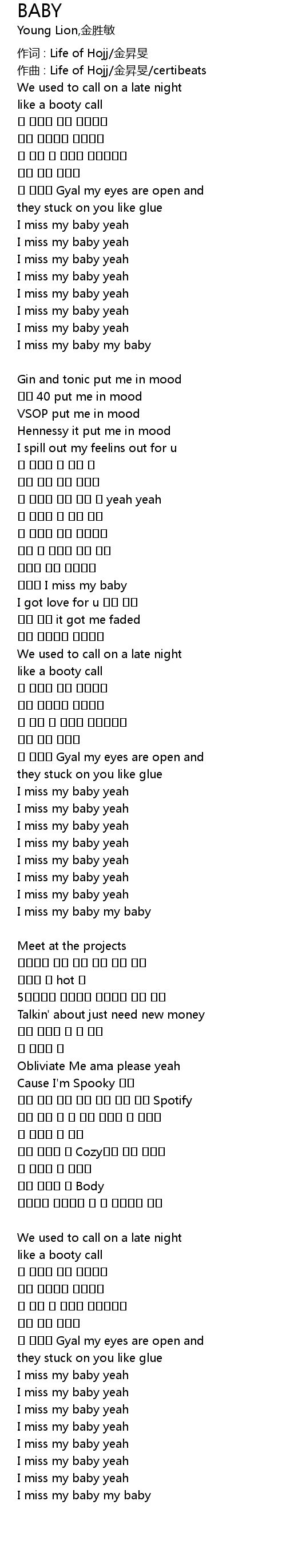 | I miss my baby yeah | |