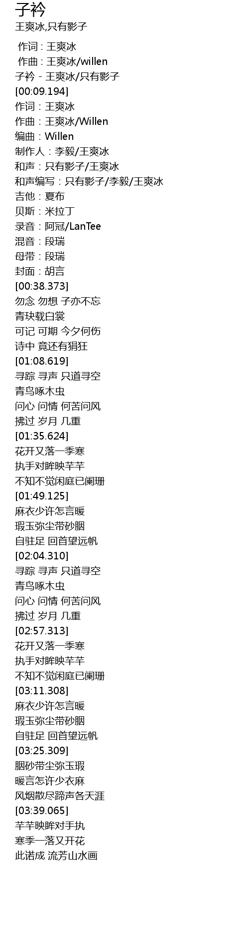 | [00:07.436] | 子衿 - 王爽冰/只有影子 |