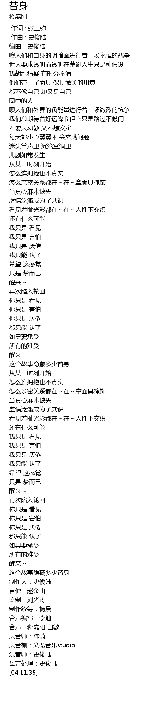 | [04:11.02] | 母带处理:史俊陆 |