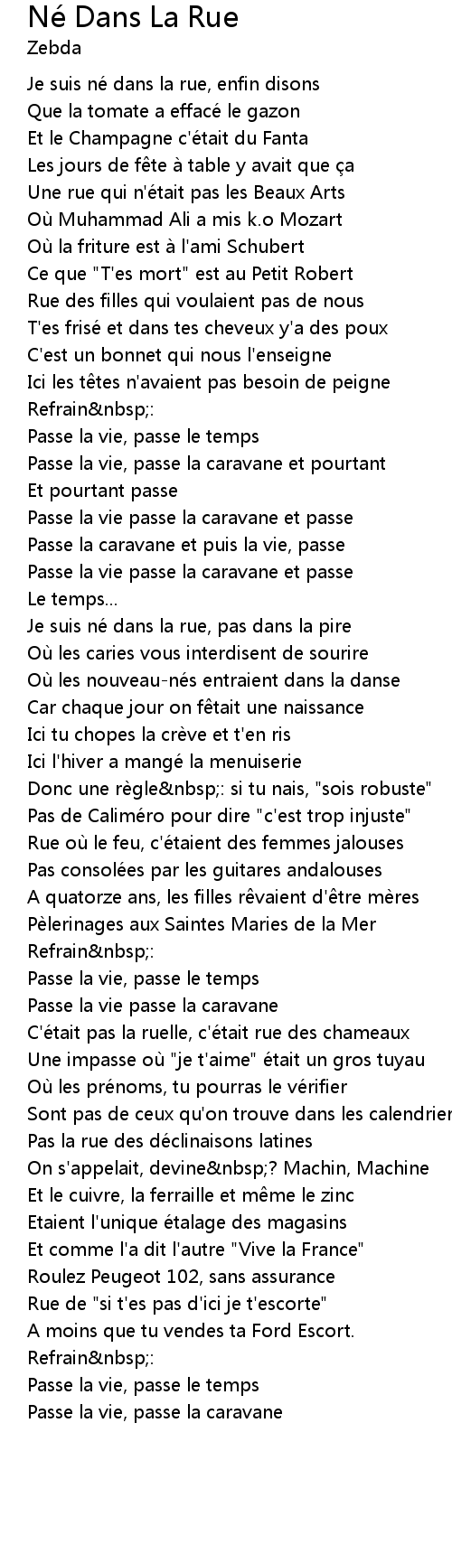 | Song | Né Dans La Rue |