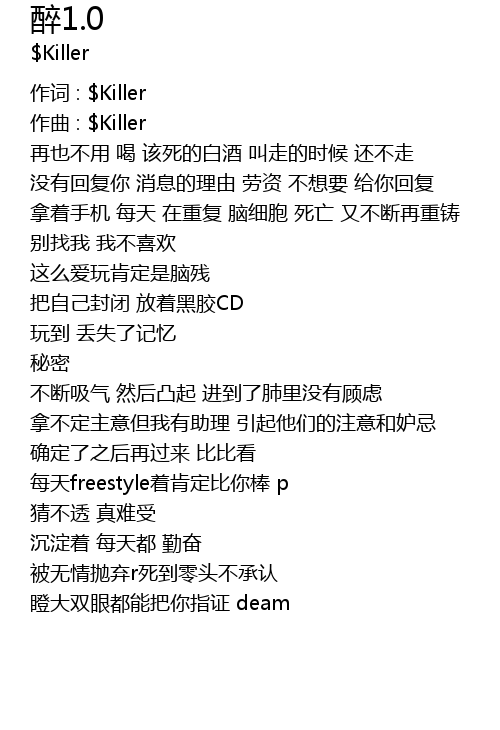 | 作词 : $Killer | |