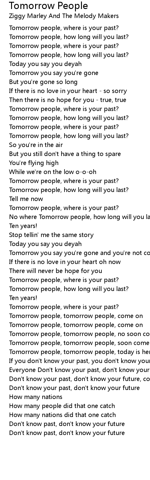 Tomorrow people, tomorrow people, no soon come |
