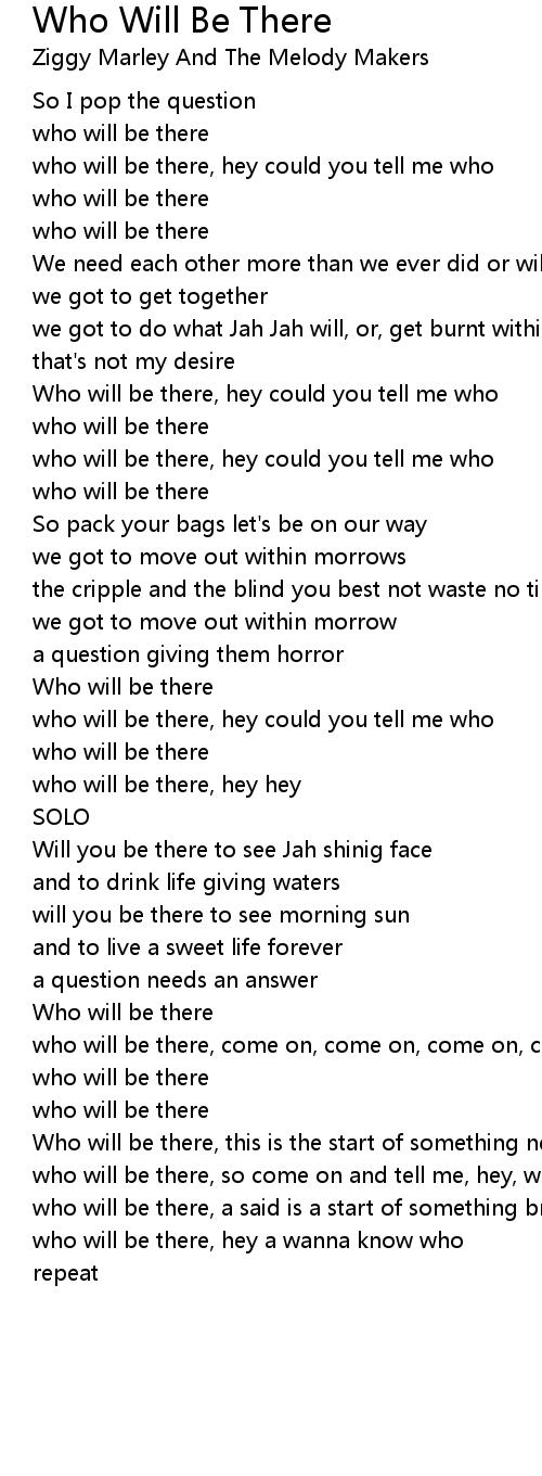 who will be there, so come on and tell me, hey, will you |