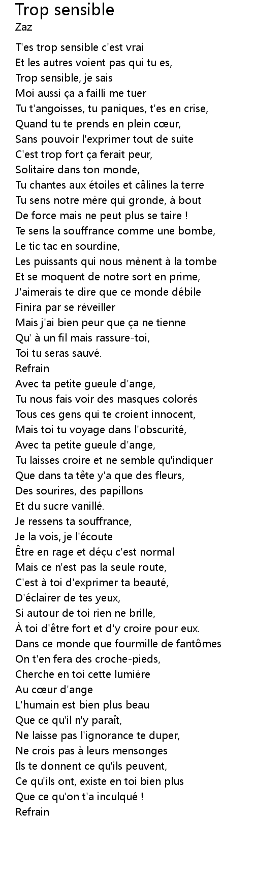 | T' es trop sensible c' est vrai | |