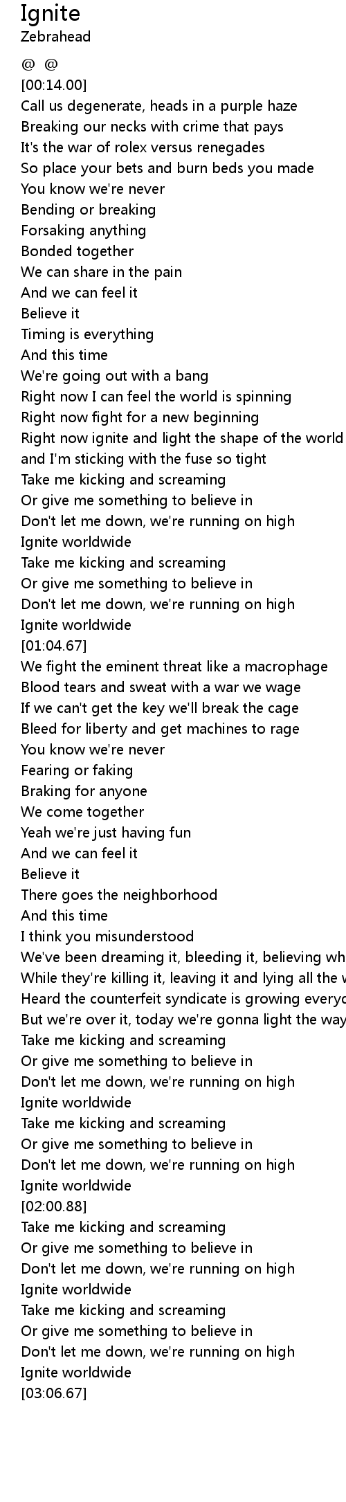 | [00:39.90] | Right now ignite and light the shape of the world your living |