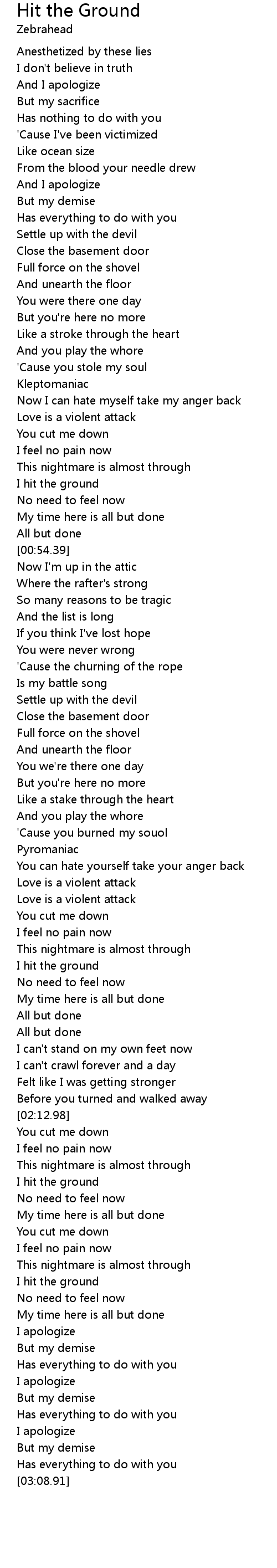 | [00:40.36] | I hit the ground |