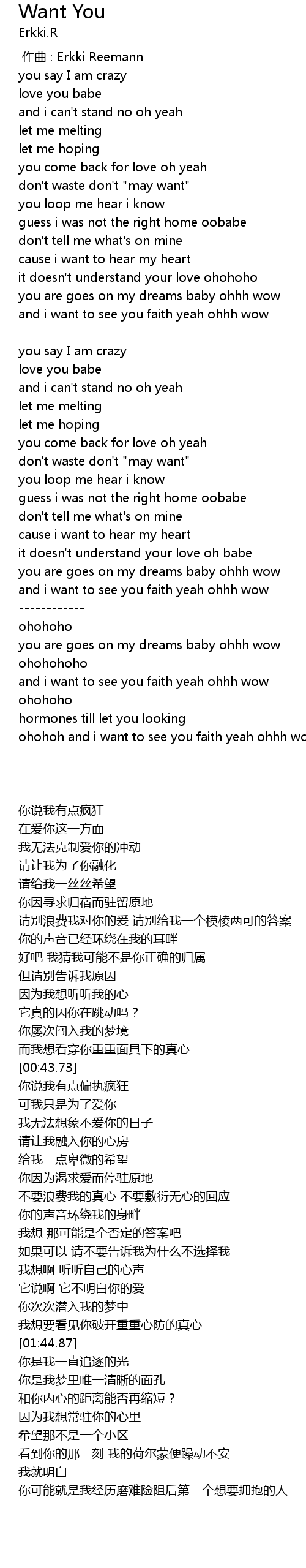 | [02:16.46] | ohohoh and i want to see you faith yeah ohhh wow |