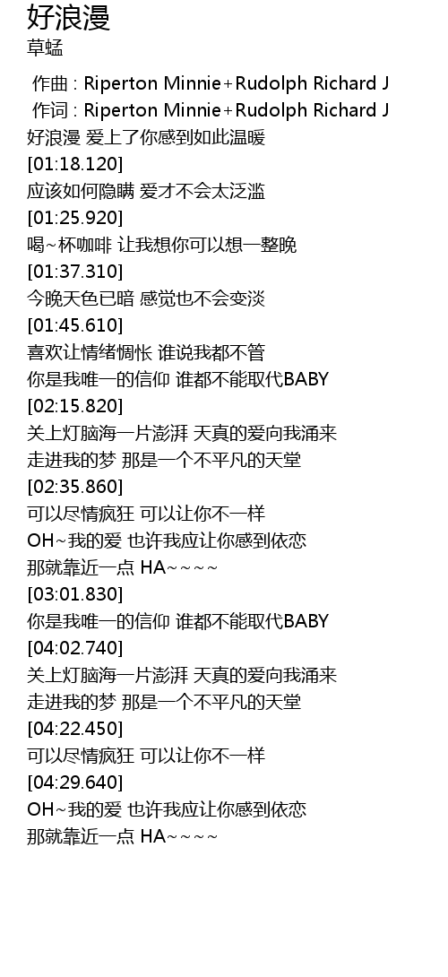 | [00:00.00] | 作曲 : Riperton Minnie+Rudolph Richard J |