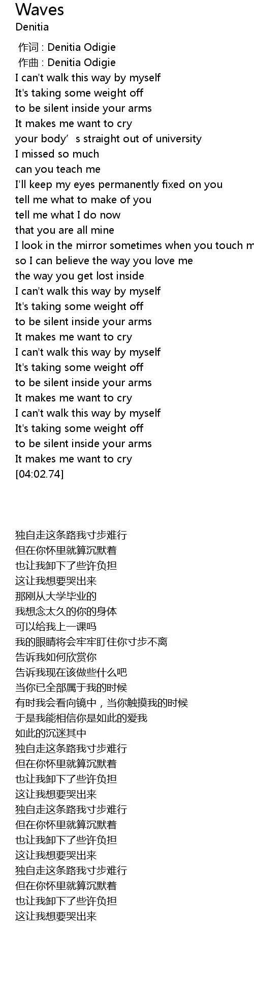 | [00:00.00] | 作词 : Denitia Odigie |
