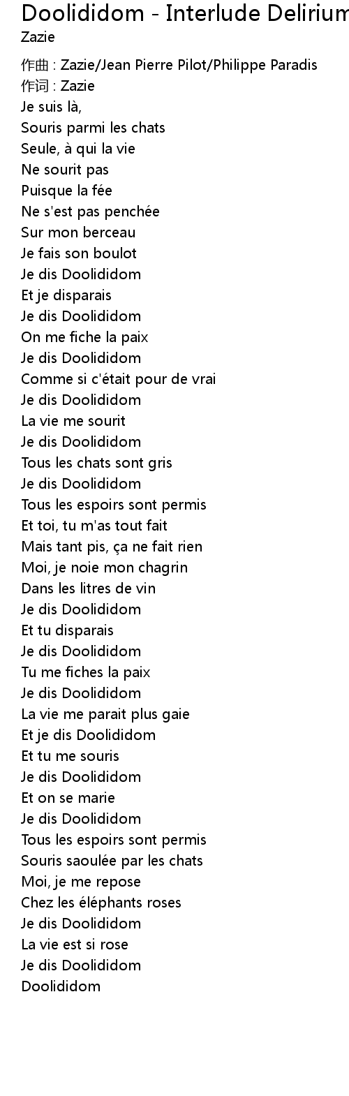 | 作曲 : Zazie/Jean Pierre Pilot/Philippe Paradis | |