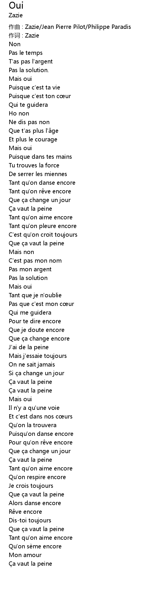 zuò qǔ : Zazie Jean Pierre Pilot Philippe Paradis