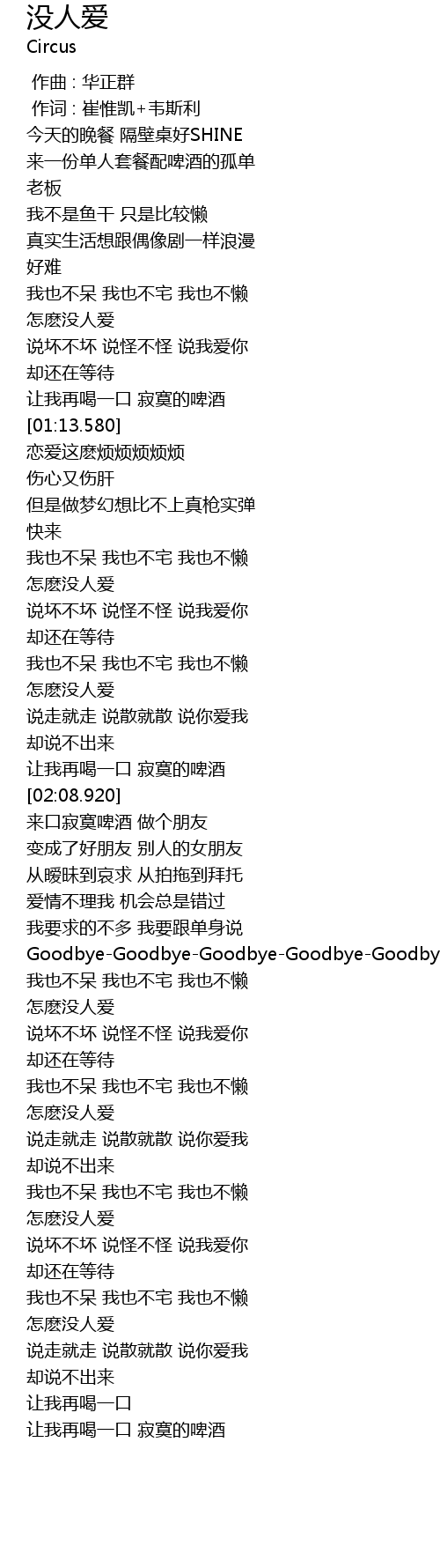 | [01:53.800] | 怎麽没人爱 |