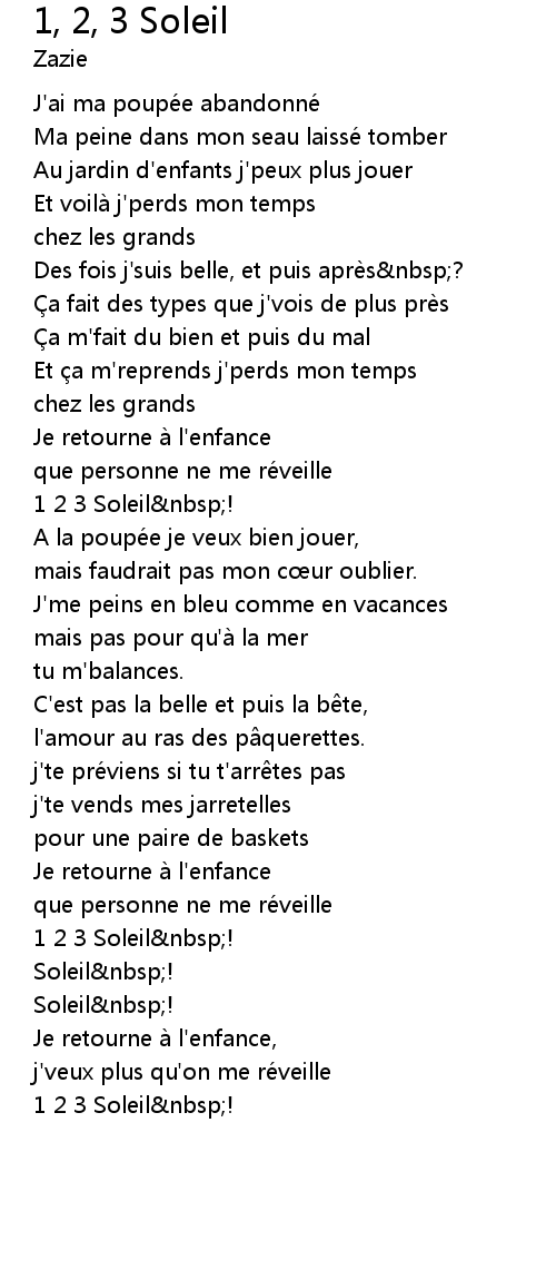 | Song | 1, 2, 3 Soleil |
