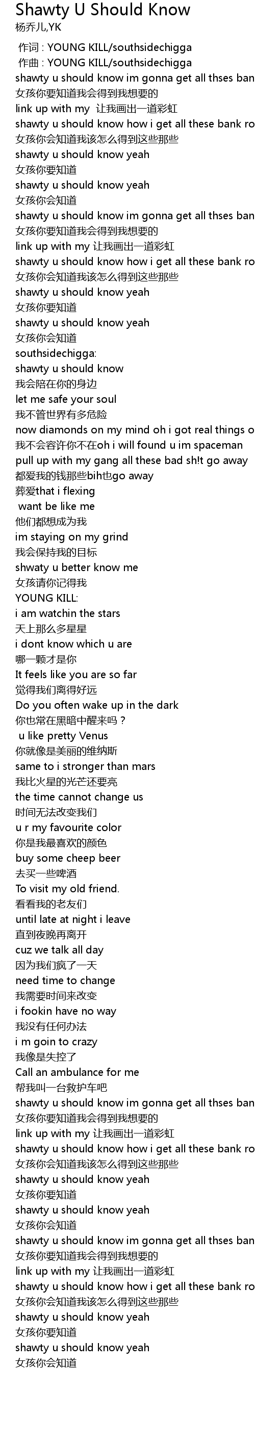 | [00:19.24] | shawty u should know how i get all these bank roll |