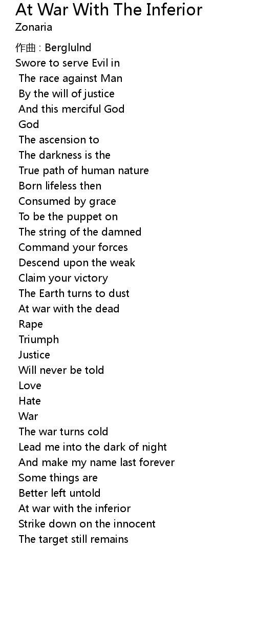 | Song | At War With The Inferior |