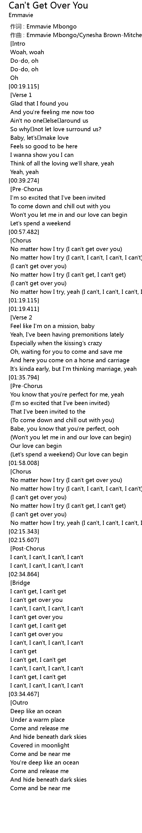 | [00:00.614] | zuo qu : Emmavie Mbongo Cynesha BrownMitchell |