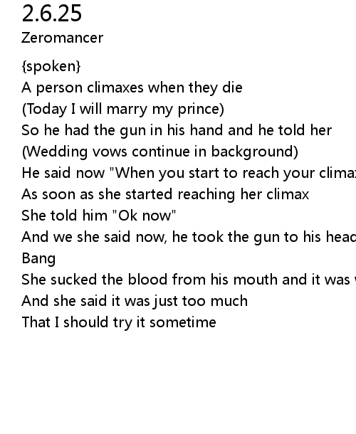 | He said now "When you start to reach your climax tell me when" | |
