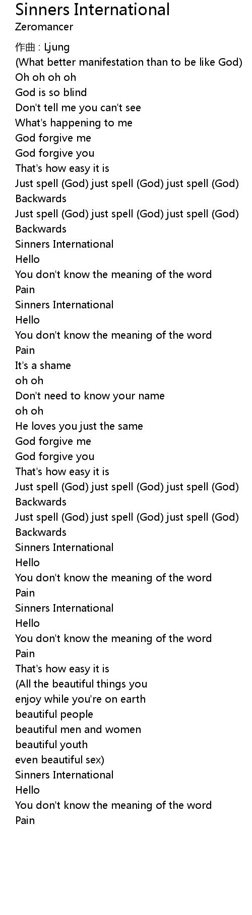 | Song | Sinners International |