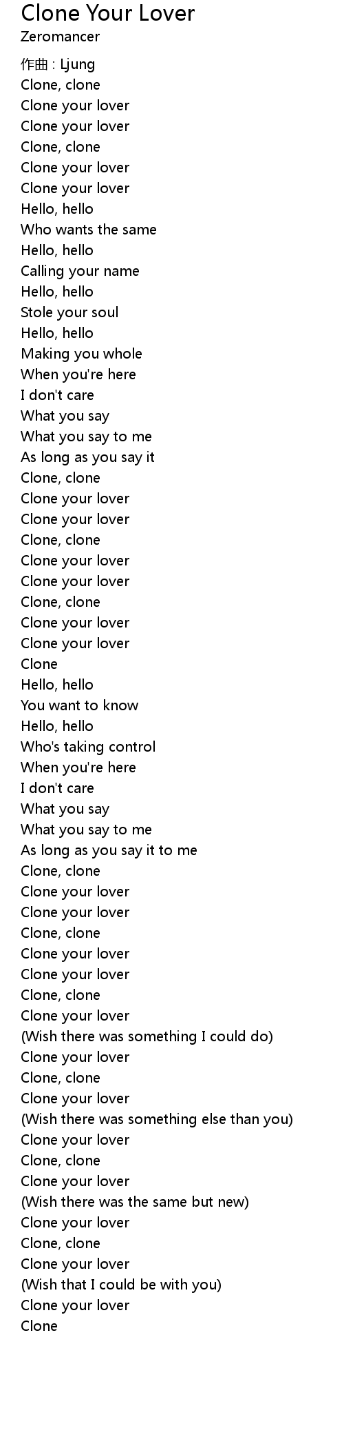 | Clone your lover | |