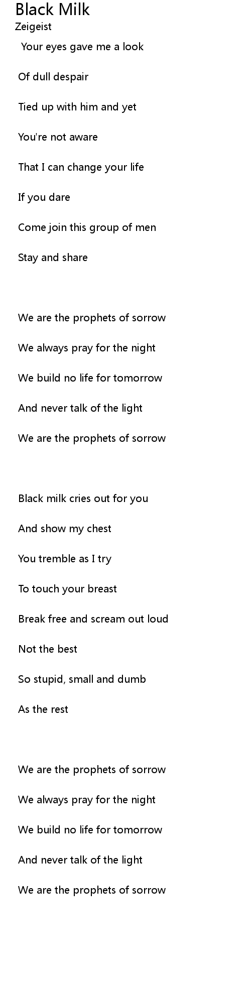 Black milk cries out for you |