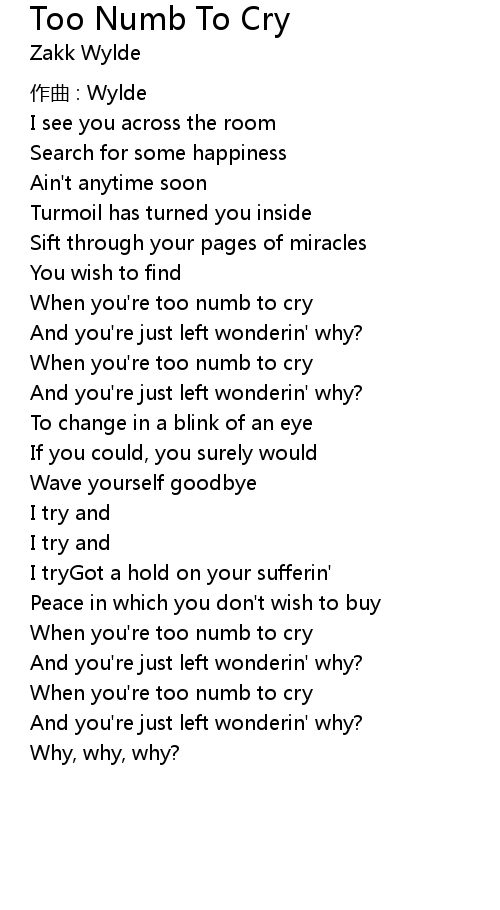 | Song | Too Numb To Cry |