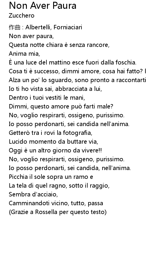| Song | Non Aver Paura |